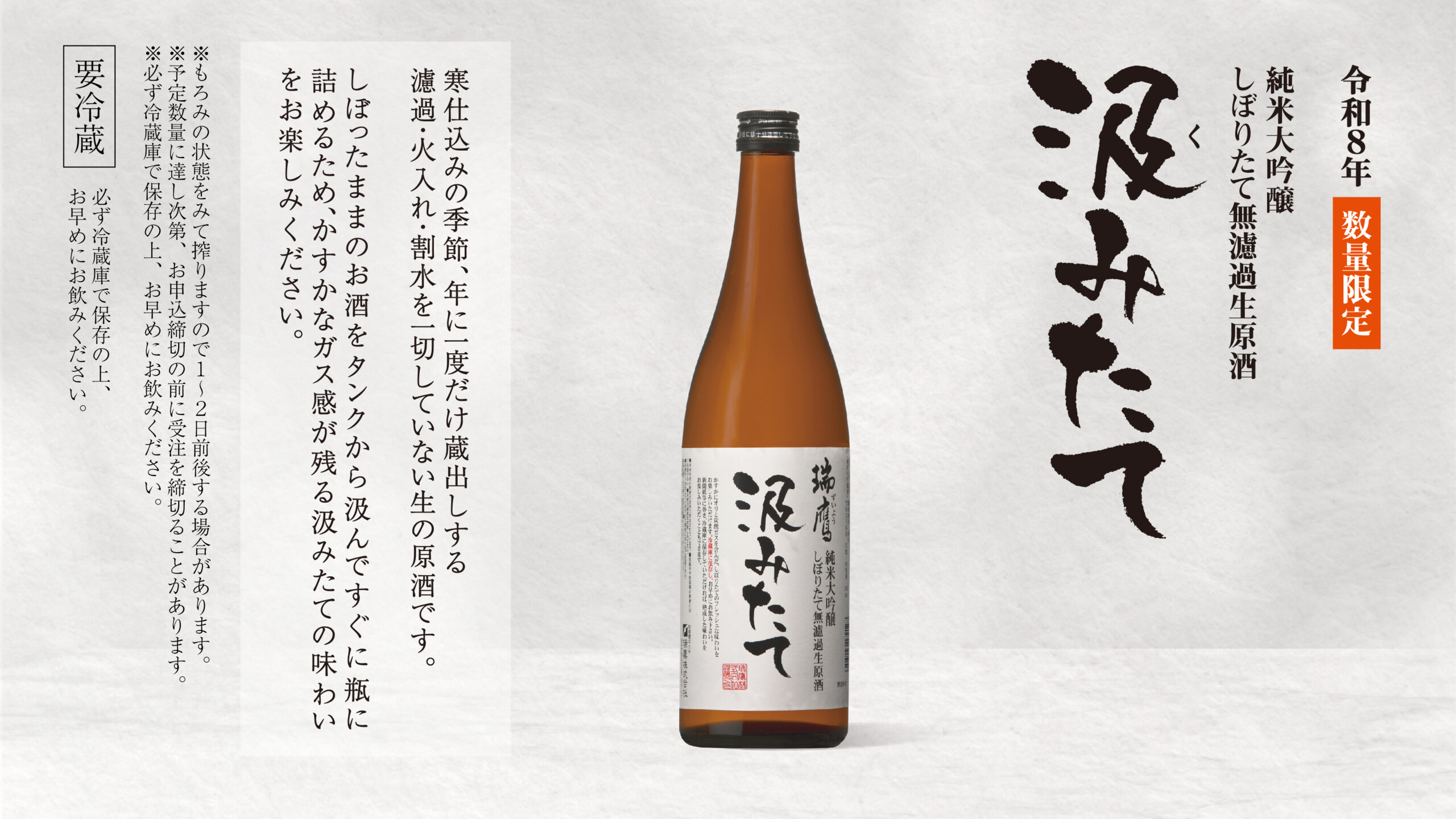 寒仕込みの季節、年に一度だけ蔵出しする濾過・火入れ・割水を一切していない生の原酒です。